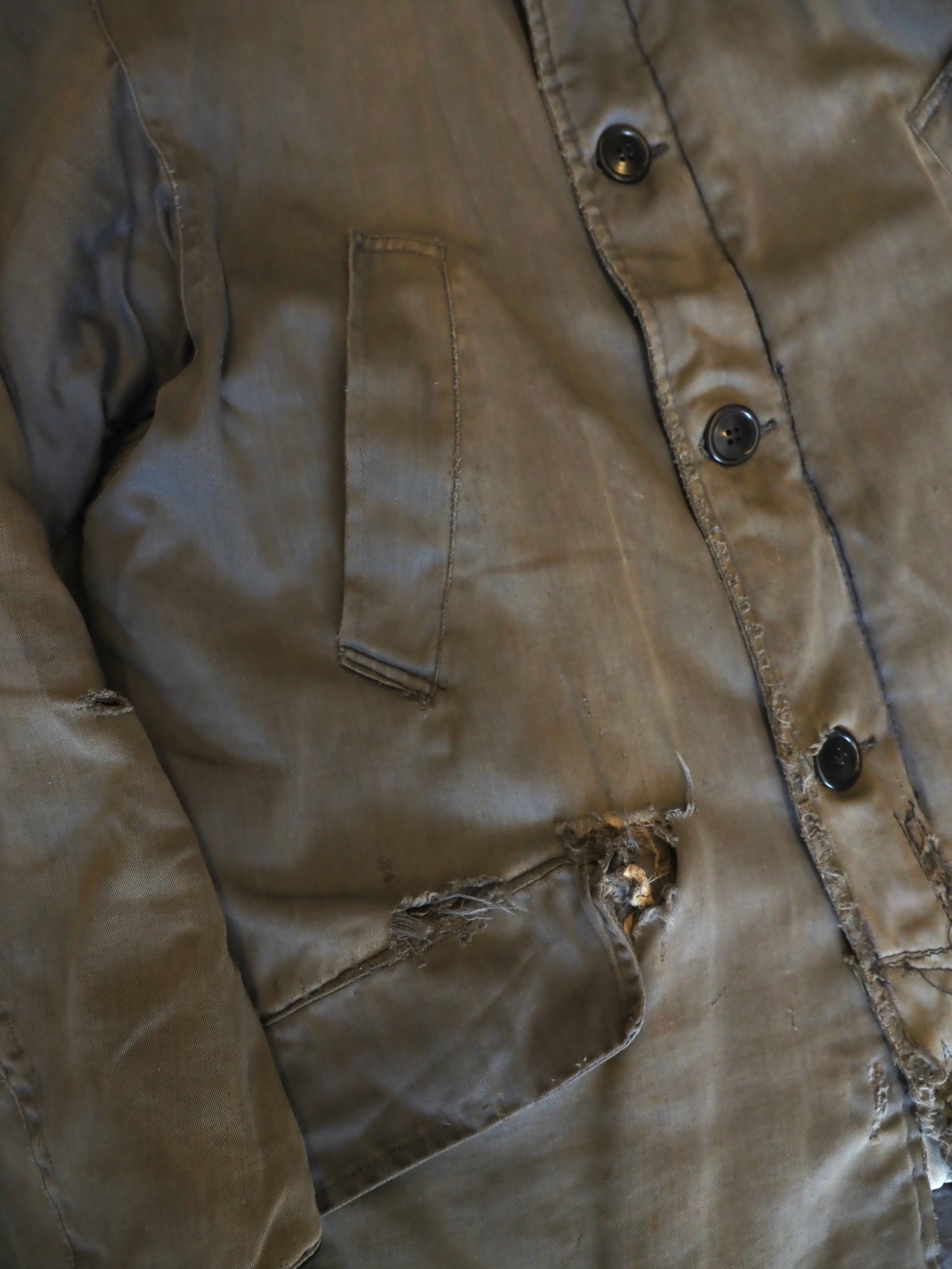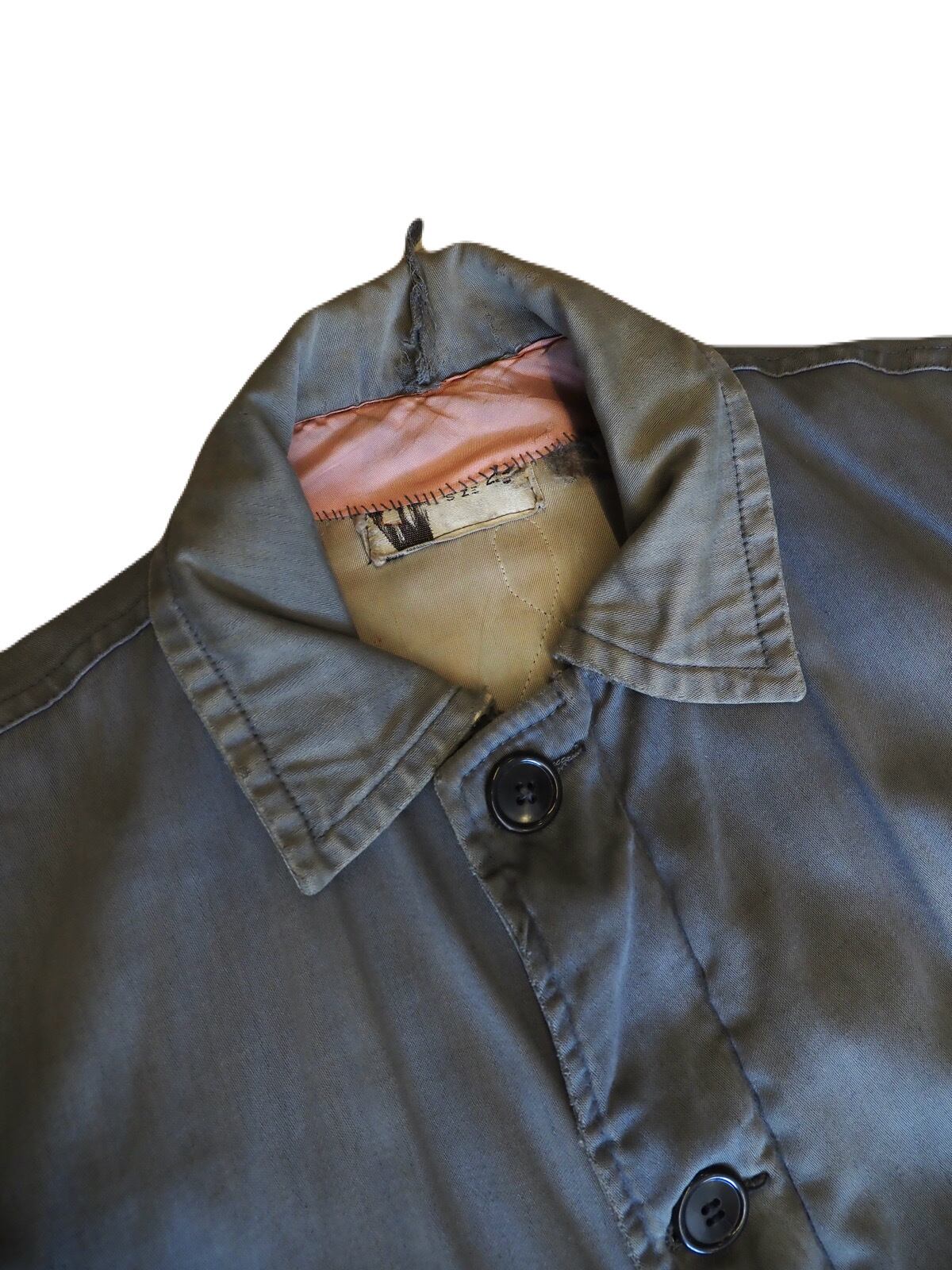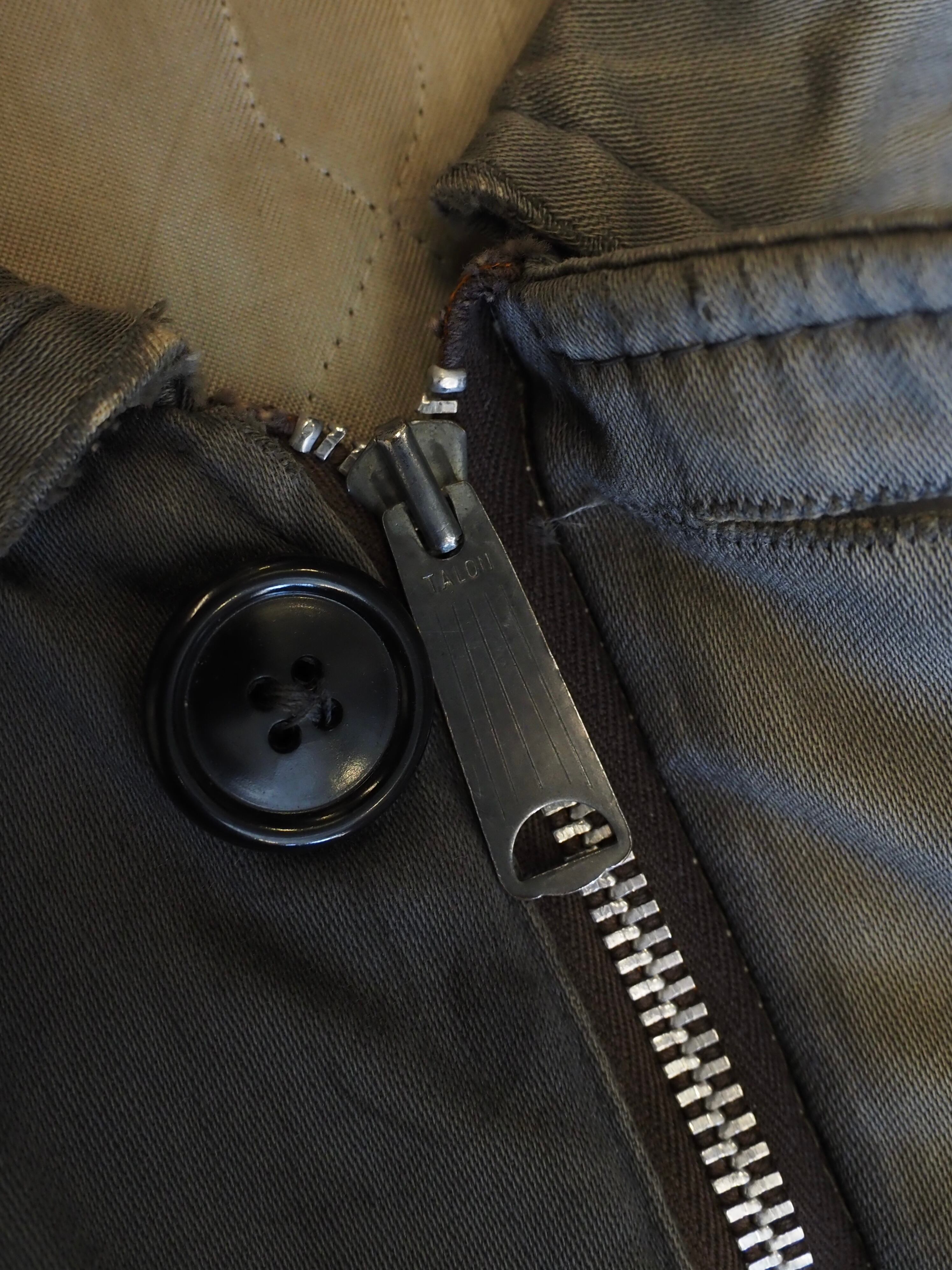 ジップはTALONのデカ五角形ジップで、詳細は少し謎ですが、ミルスペックは無く、ミリタリーというよりワークジャケットの様なディテールです。 まあ、使用感のあるボロの雰囲気が抜群にカッコ良いアウターで、見た目はシンプルですが、着用したときのバランスのボロの感じがめちゃくちゃ渋いアイテムです。