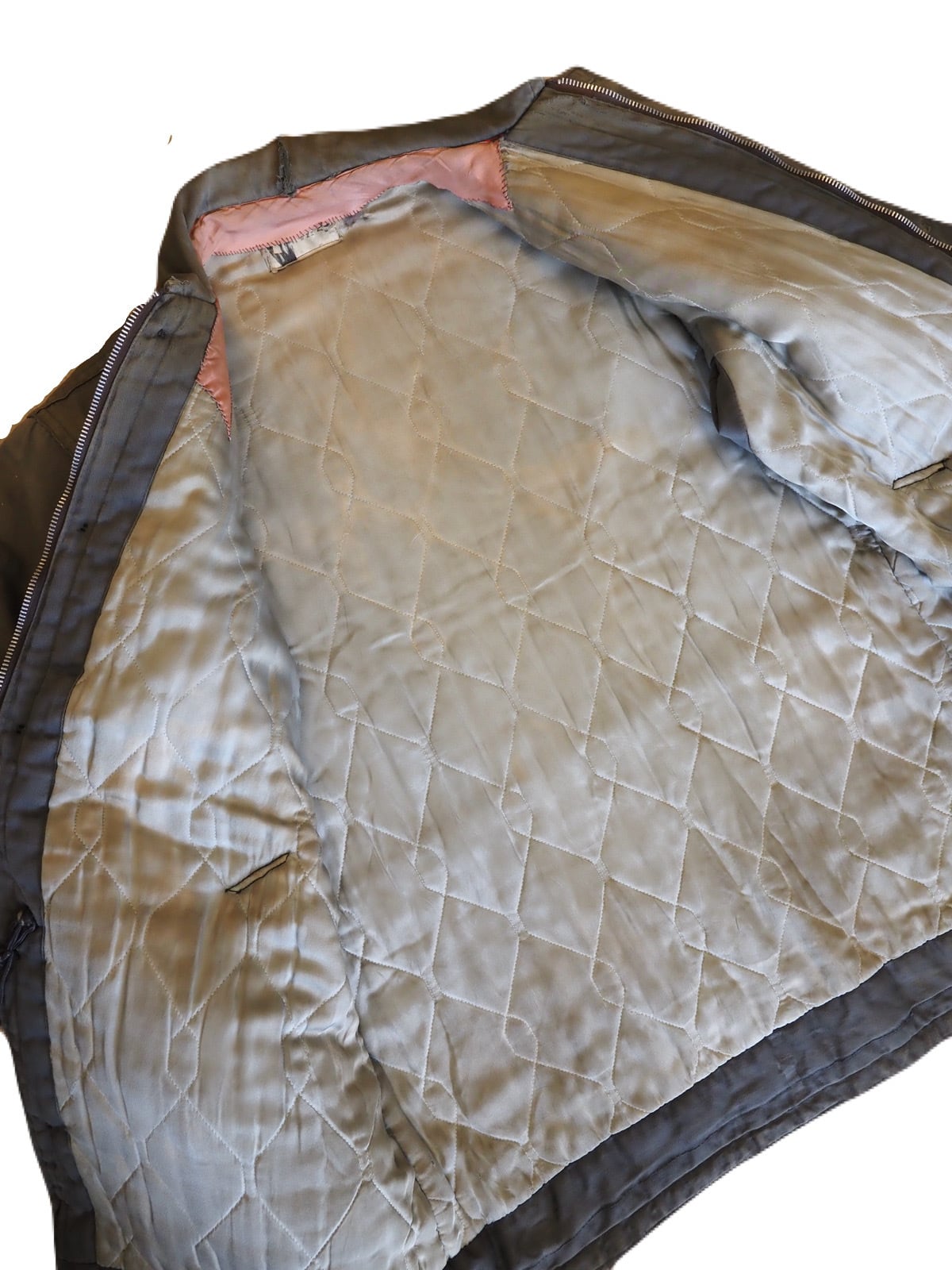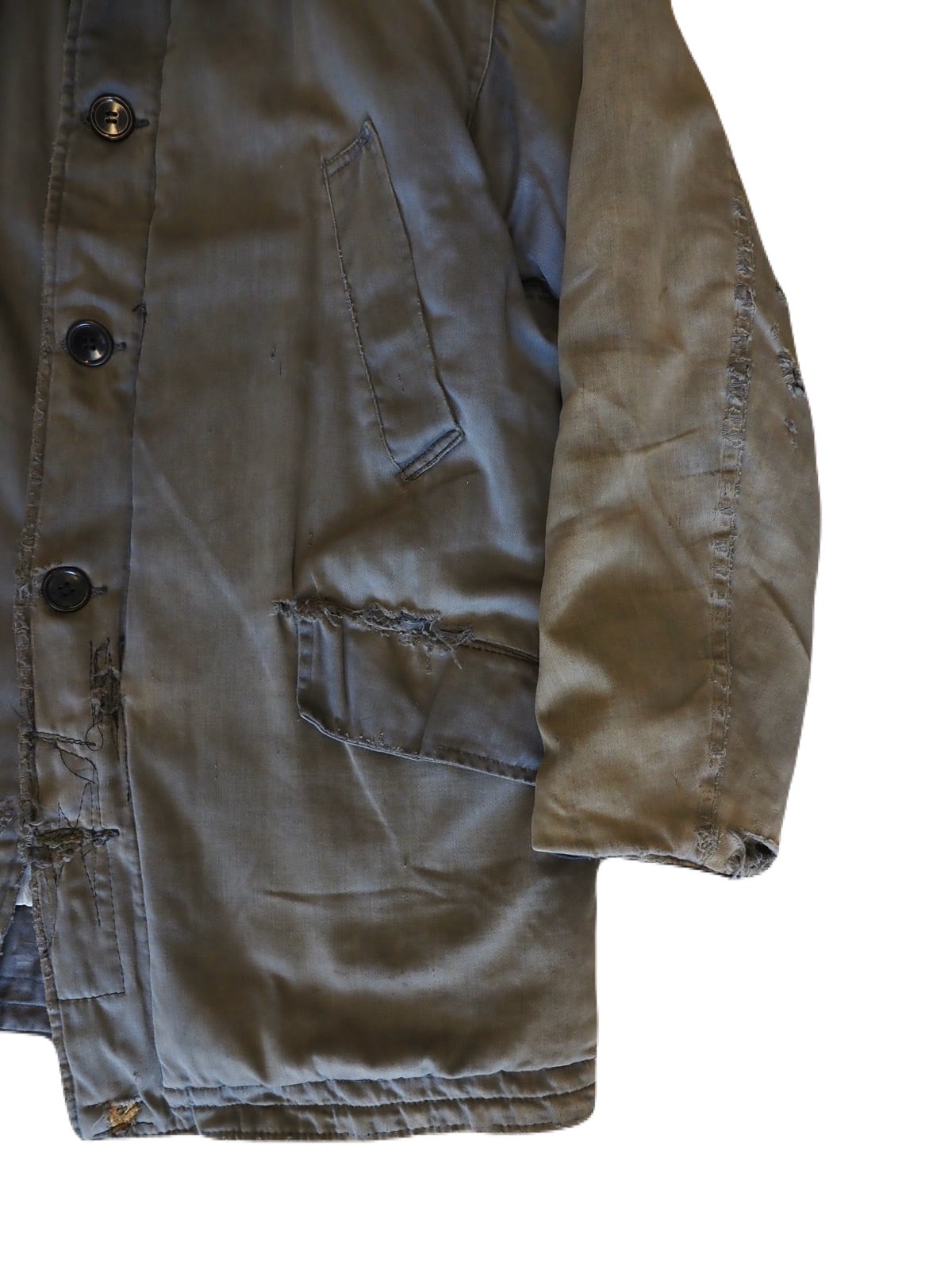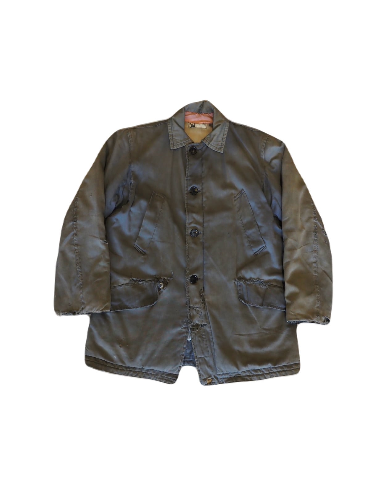 ジップはTALONのデカ五角形ジップで、詳細は少し謎ですが、ミルスペックは無く、ミリタリーというよりワークジャケットの様なディテールです。 まあ、使用感のあるボロの雰囲気が抜群にカッコ良いアウターで、見た目はシンプルですが、着用したときのバランスのボロの感じがめちゃくちゃ渋いアイテムです。
